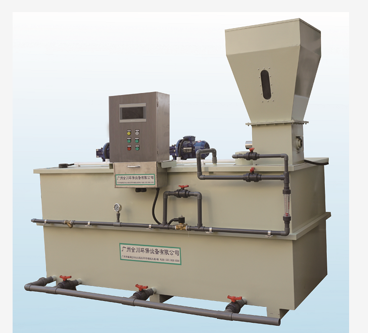 適用于高分子有機絮凝劑的制備與投加,用戶只需將藥劑干粉直接加入設(shè)備的料斗中,即可實現(xiàn)全自動的投料、溶解、熟化、儲存、計量加藥等過程,整個過程無需人工操作,完全自動運行。設(shè)備采用三槽或二槽式結(jié)構(gòu),分別用來進行攪拌、熟化和貯存。配套設(shè)備主要由干粉進料器、投配螺旋、混合器、振動器、攪拌器、液位控制儀、供水系統(tǒng)、螺桿加藥泵及智能PLC控制系統(tǒng)組成。