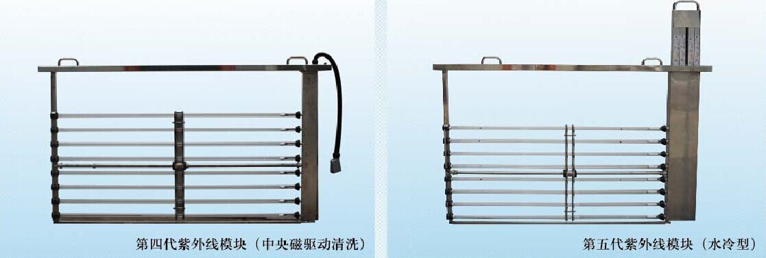 5)根據(jù)客戶處理水量、水質(zhì)及殺菌要求等不同情況,也提供每個(gè)模架3支到12支燈管的多種設(shè)計(jì),模架標(biāo)準(zhǔn)設(shè)計(jì)為8支燈管。采用優(yōu)質(zhì)不銹鋼材料制造,電線電纜密封在清洗模塊內(nèi),且有獨(dú)特的固封技術(shù),不會(huì)暴露在污水和紫外線中。