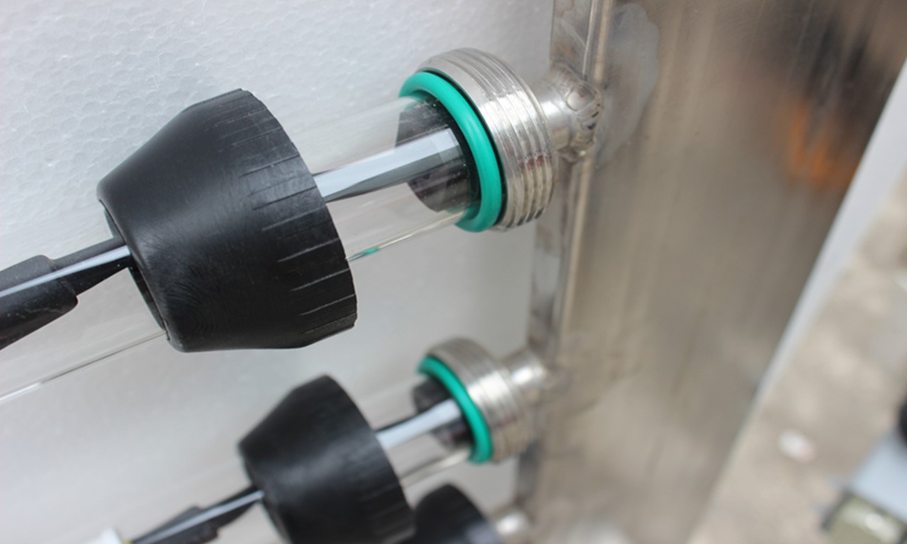 3)紫外燈管連接口處有四重密封設(shè)計(jì)。采用獨(dú)特的固化密封設(shè)計(jì),在水壓大于6kg/cm2多次試驗(yàn)無泄漏現(xiàn)象發(fā)生,密封等級(jí)遠(yuǎn)大于IP68的級(jí)別。