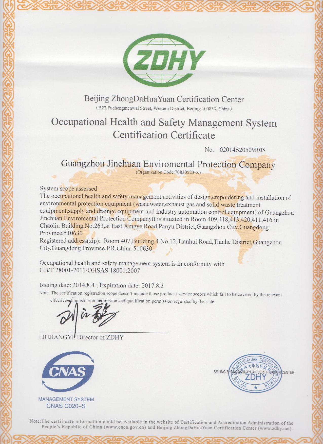 從2013年開始,公司開始著手認(rèn)證的準(zhǔn)備,經(jīng)過多次修訂和完善,最終在全體員工的共同努力下,經(jīng)過北京中大華遠(yuǎn)認(rèn)證中心的認(rèn)證審核,于2014年8月4日正式通過國家標(biāo)準(zhǔn)審核,并取得了職業(yè)健康安全管理體系兩項(xiàng)證書。